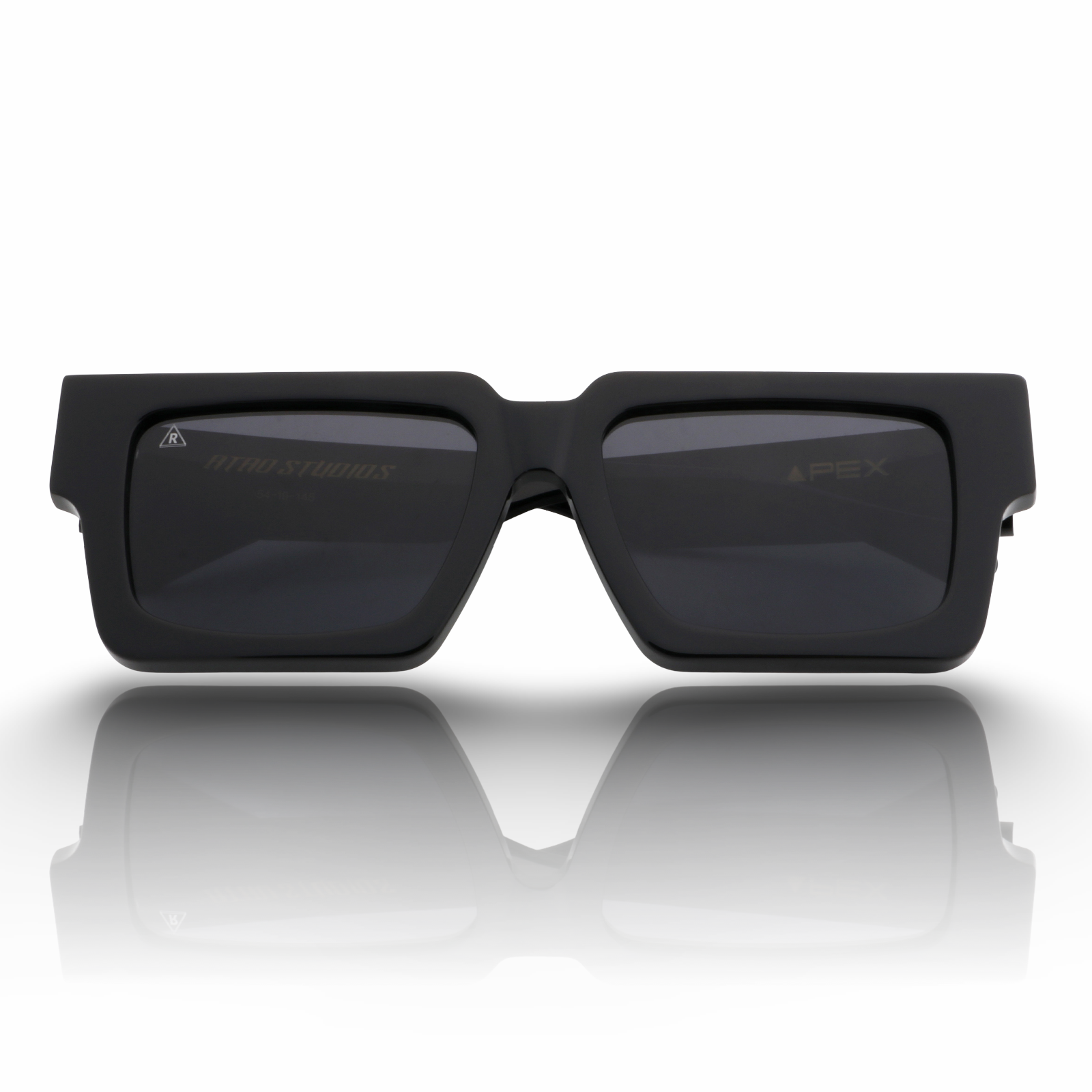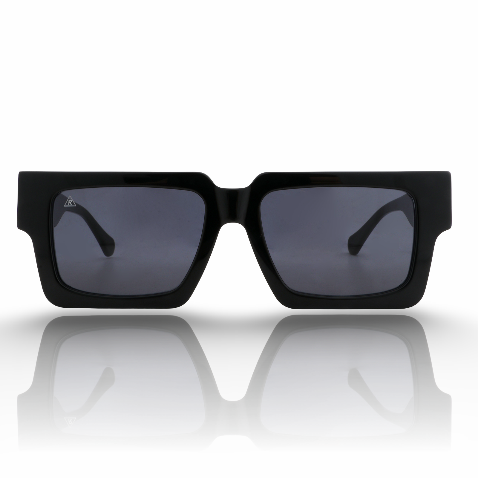Glossy black Mazzucchelli Italian acetate. Oversized, bold silhouette creates a presence that’s impossible to ignore.